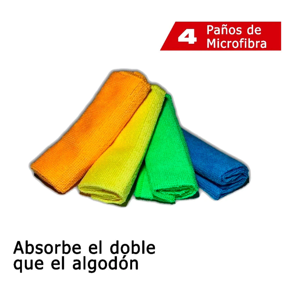 Este pack de 4 paños de microfibra multiuso es la solución ideal para mantener tus espacios siempre impecables. Su material absorbente y antibacteriano permite una limpieza profunda sin rayar las superficies.